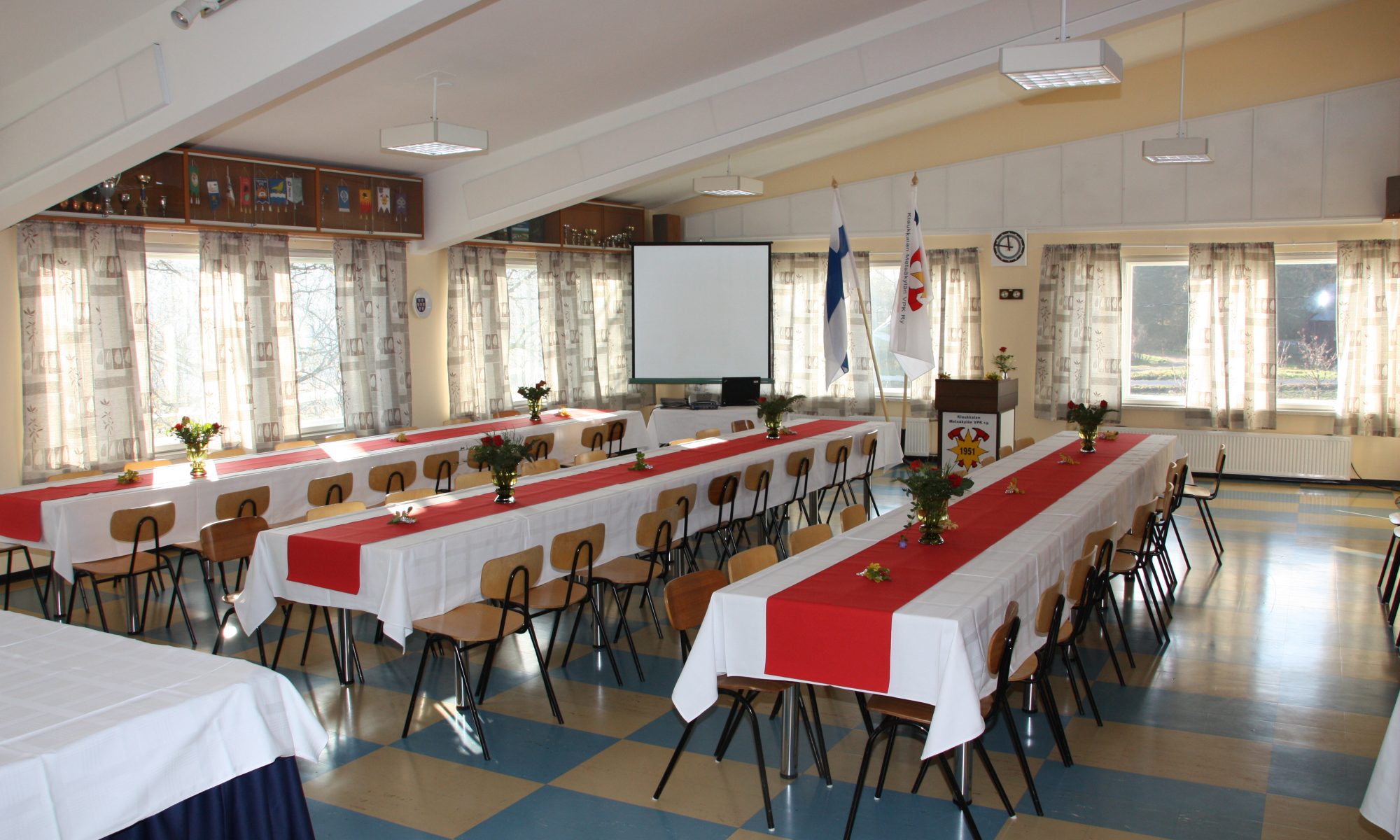 Kokous ja valistustila sijaitsee kiinteistön toisessa kerroksessa ja on mitoitettu n. 50-60 henkilölle. Tilan yhteydessä on täysin kalustettu keittiö.